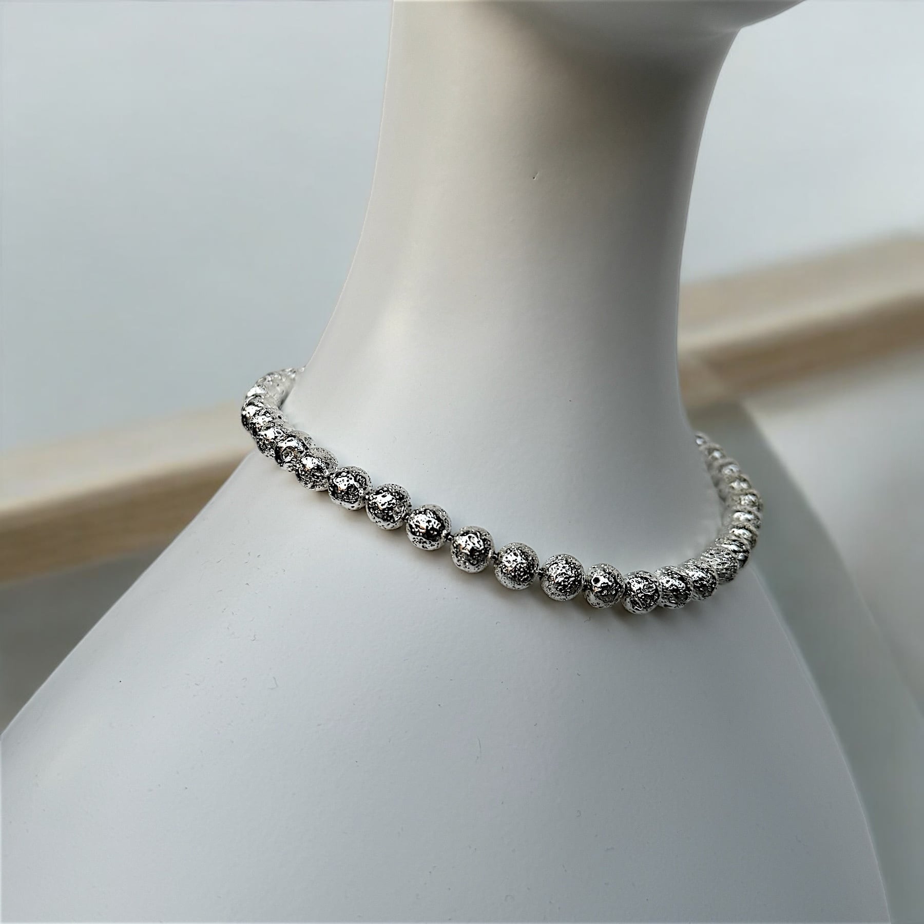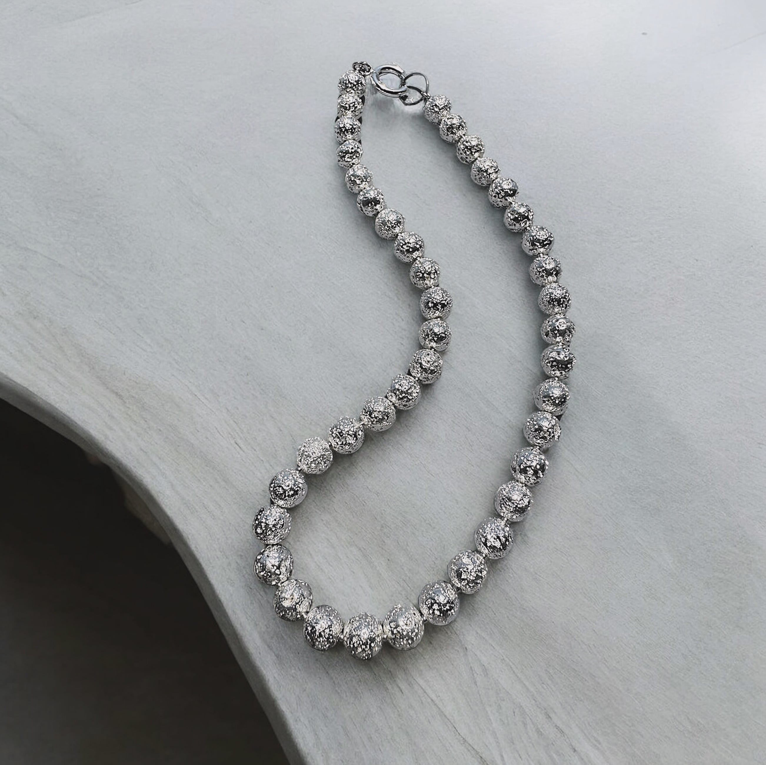 首元でキラッキラ!一癖シルバーボールのネックレス春夏のコーディネートに映えるボリューミーなミニマルネックレス。